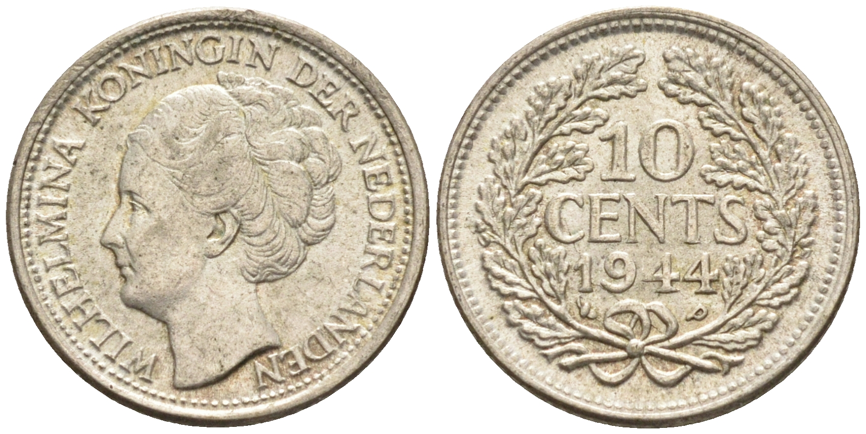 Нидерланды 10 центов 1944 P, Вильгельмина I (1890-1948) KM 163 серебро 4169-231