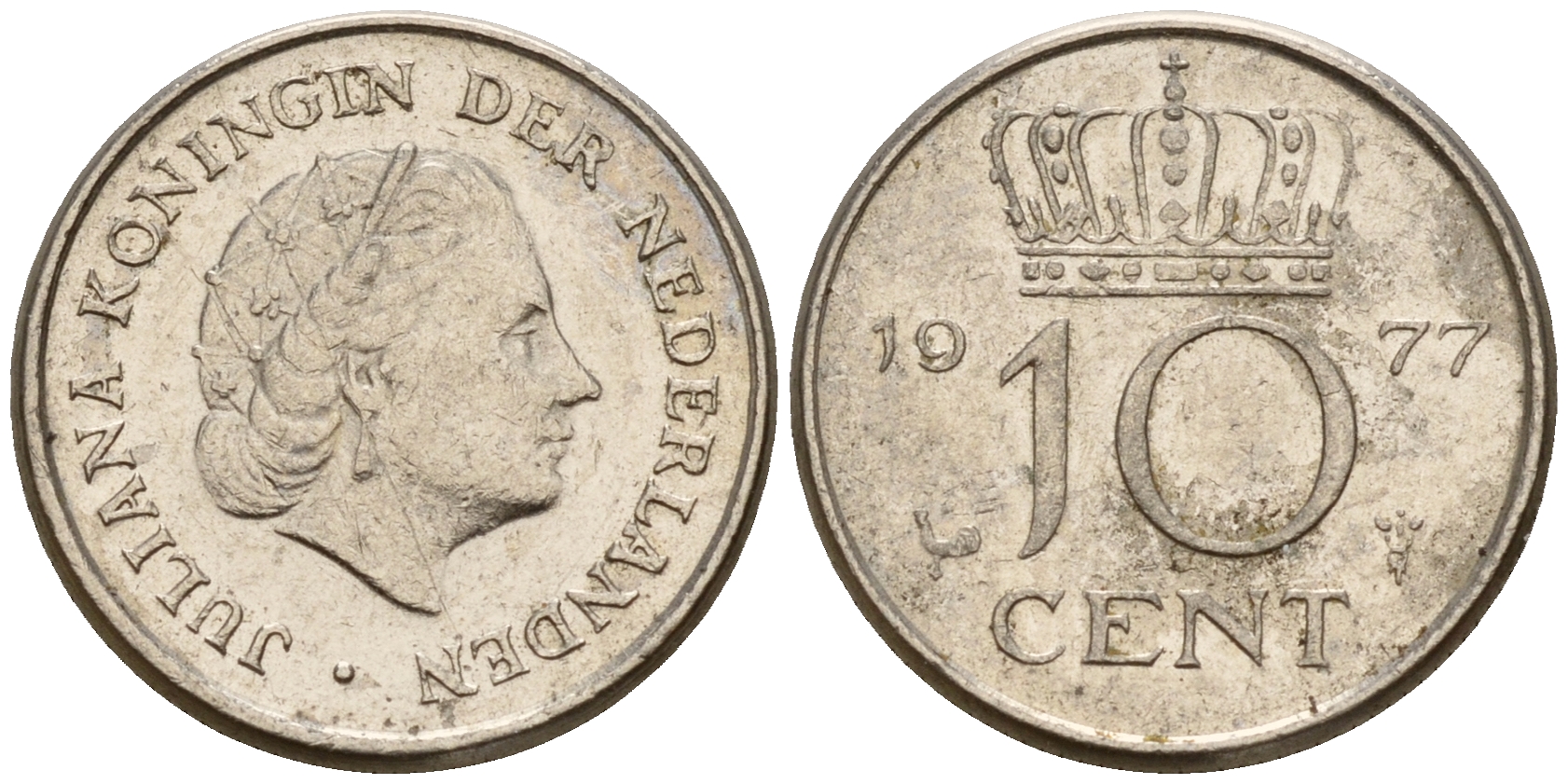 Нидерланды 10 центов 1977 Юлиана (1949-1980) KM 182 никель 4598-333