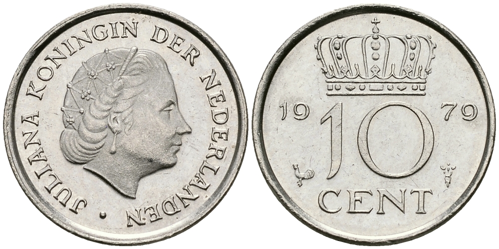 НИДЕРЛАНДЫ 10 ЦЕНТОВ 1979 ЮЛИАНА KM 182 никель 96-515