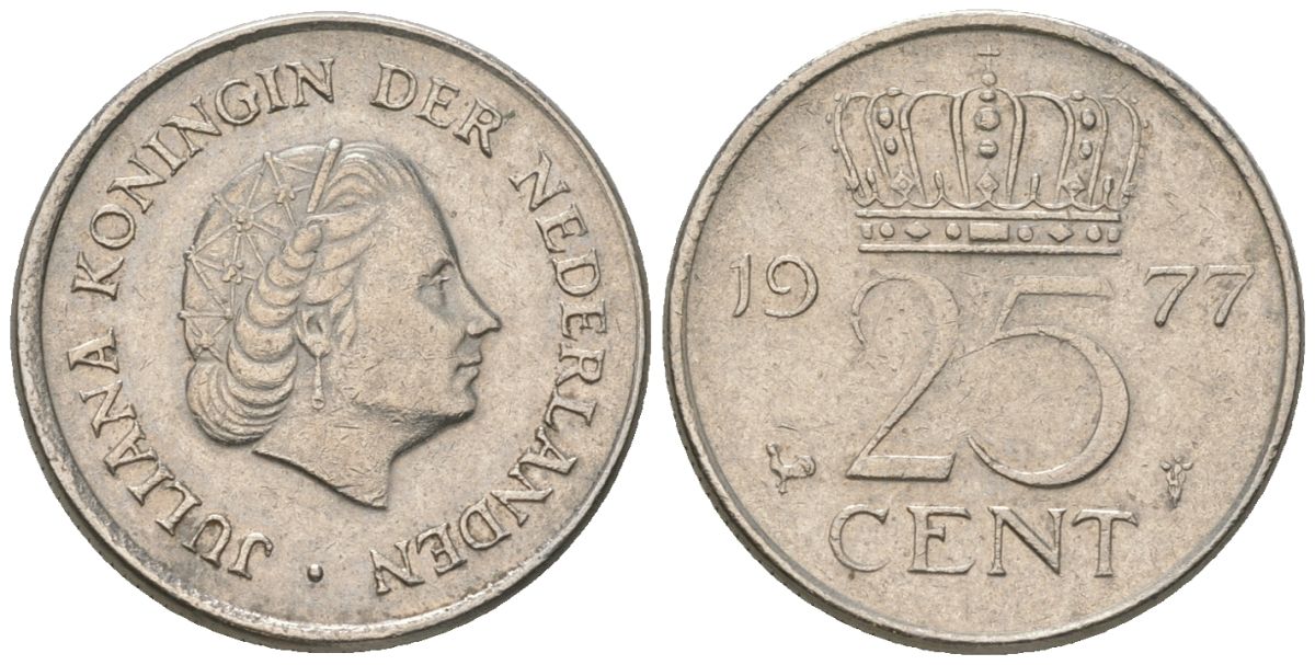 Нидерланды 25 центов 1977 Юлиана (1948-1980) KM 183 никель 4564-1253