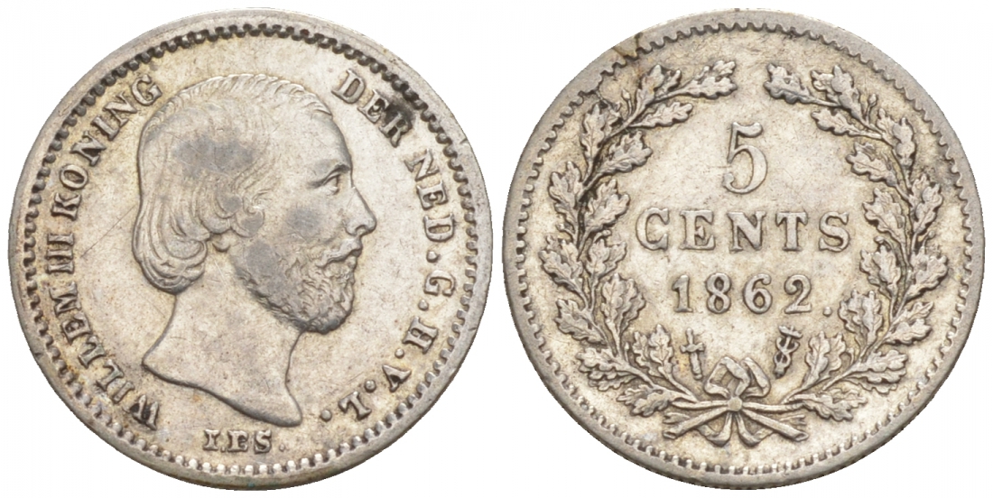 Нидерланды 5 центов 1862 Виллем III (1849-1890) KM 91 серебро 44-1017