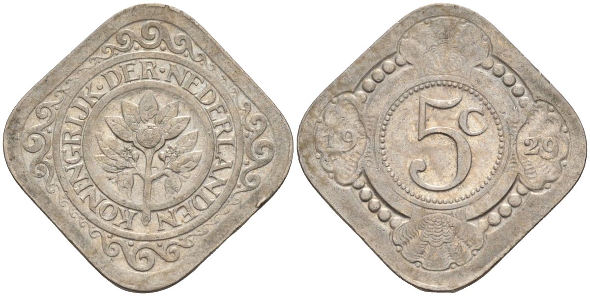 Нидерланды 5 центов 1929 Вильгельмина (1890-1948) KM 153 медно-никель 4592-842