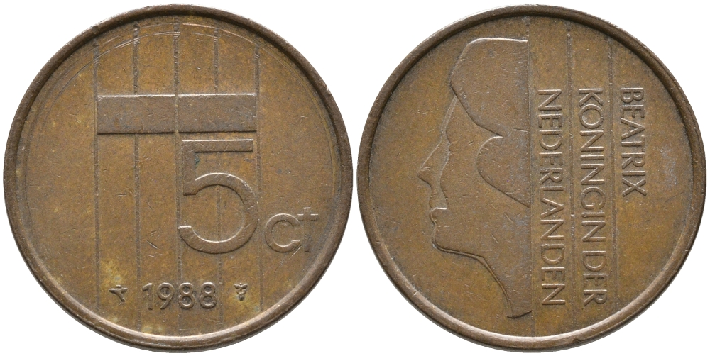 НИДЕРЛАНДЫ 5 ЦЕНТОВ 1988 БЕАТРИКС KM 202 бронза 65-1247