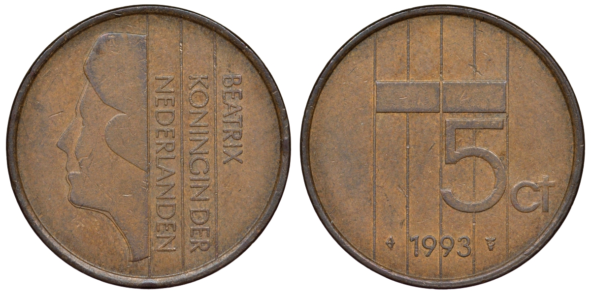 Нидерланды 5 центов 1993 Беатрикс KM 202 бронза 71-211