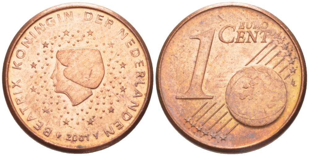 Нидерланды 1 евроцент 2001 Беатрикс (1980-2013) KM 234 сталь плакированная медью 218-1252