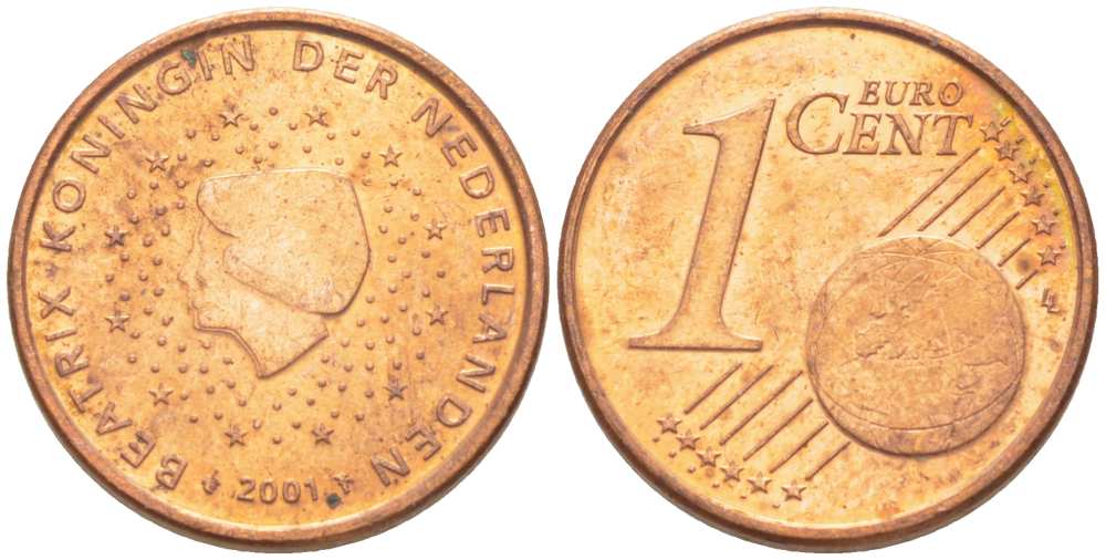 Нидерланды 1 евроцент 2001 Беатрикс (1980-2013) KM 234 сталь плакированная медью 218-1253