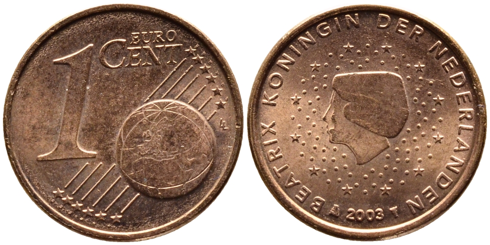 Нидерланды 1 евроцент 2003 Беатрикс (1980-2013) KM 234 сталь плакированная медью UNC 3334-1225
