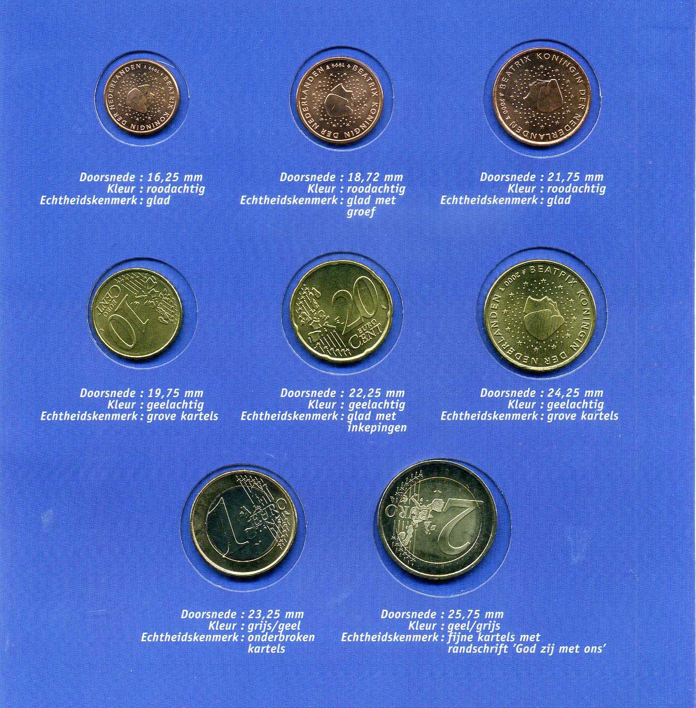 Нидерланды евронабор из 8 монет (1, 2, 5, 10, 20 и 50 евроцентов; 1 и 2 евро) в красочном буклете KM 234, 235, 236, 237, 238, 239, 240 и 241 UNC 4-3-2-40
