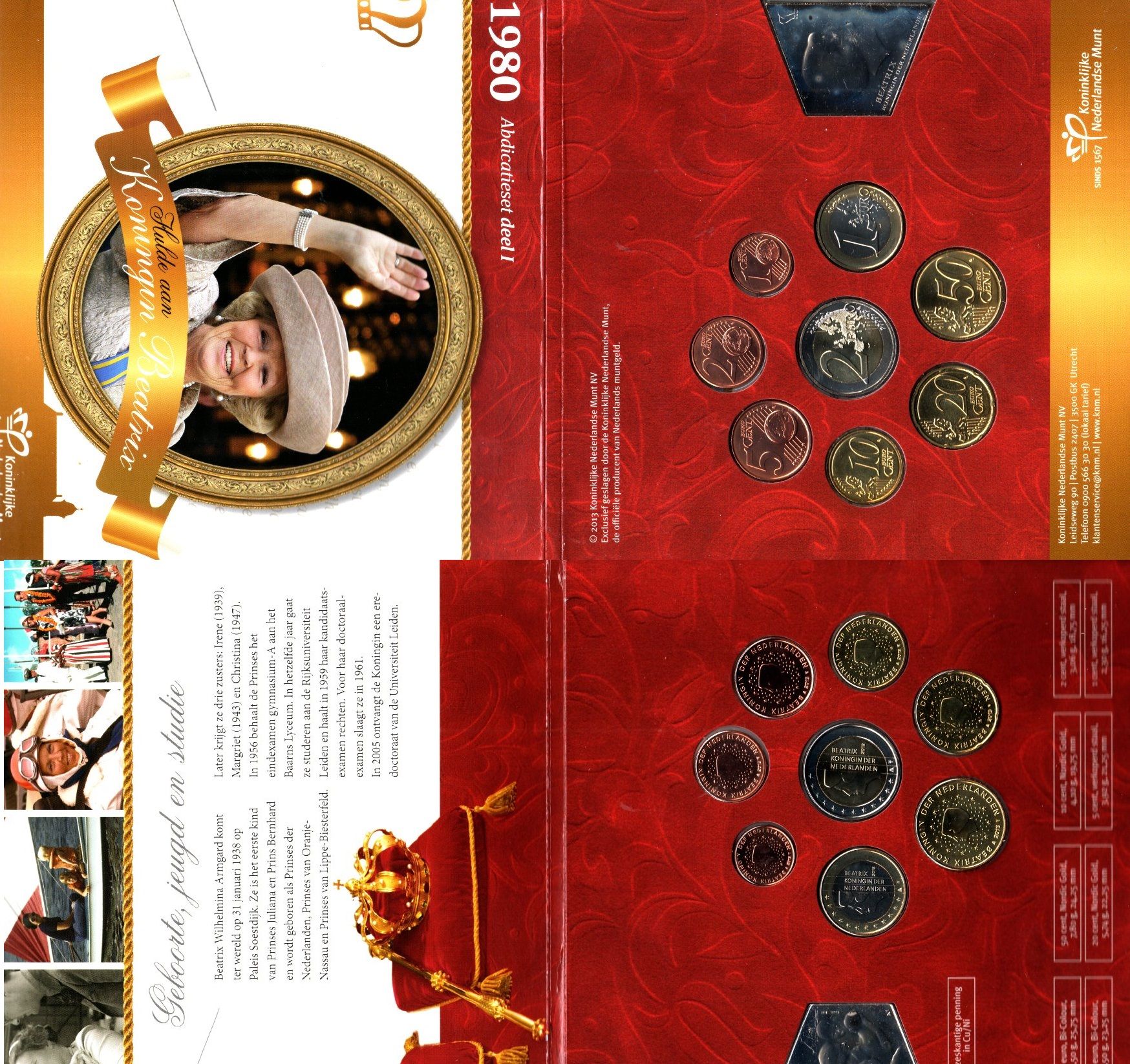 Нидерланды набор из 8 монет (1, 2, 5, 10, 20 и 50 евроцентов; 1 и 2 евро) и жетона монетного двора (половина жетона, вторая половина в жетоне набора 2014 года) 2013 официальный набор, в оригинальной упаковке KM 234, 235, 236, 268, 269, 270, 271 и 272 BU 8