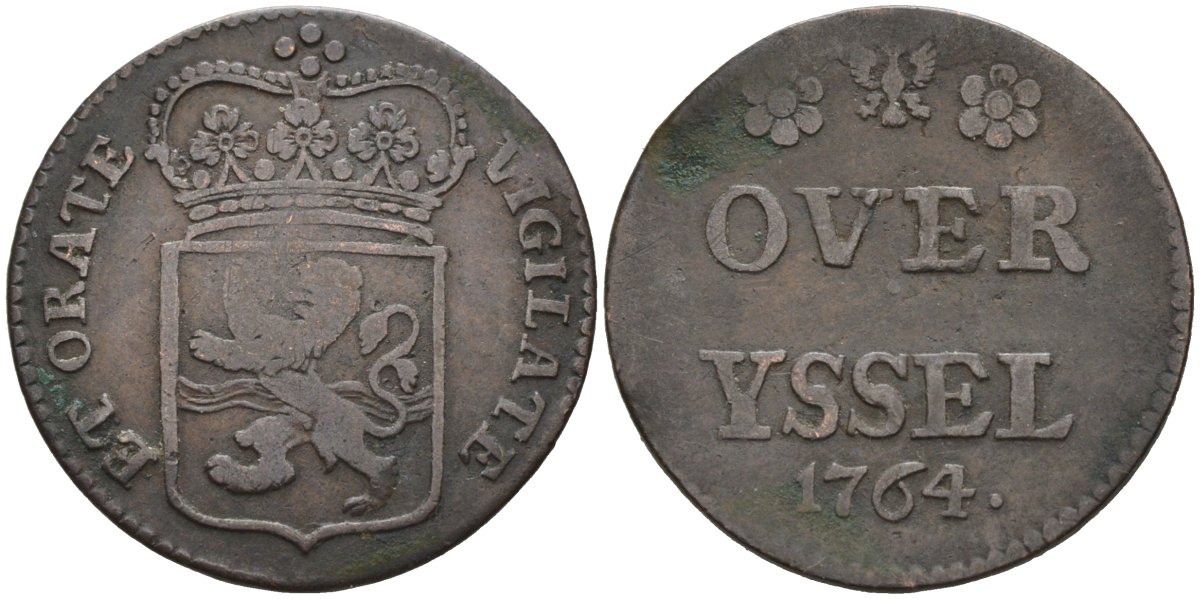 Оверэйсел (Overyssel), Нидерланды 1 дуит 1764 KM 90 медь 4575-1245
