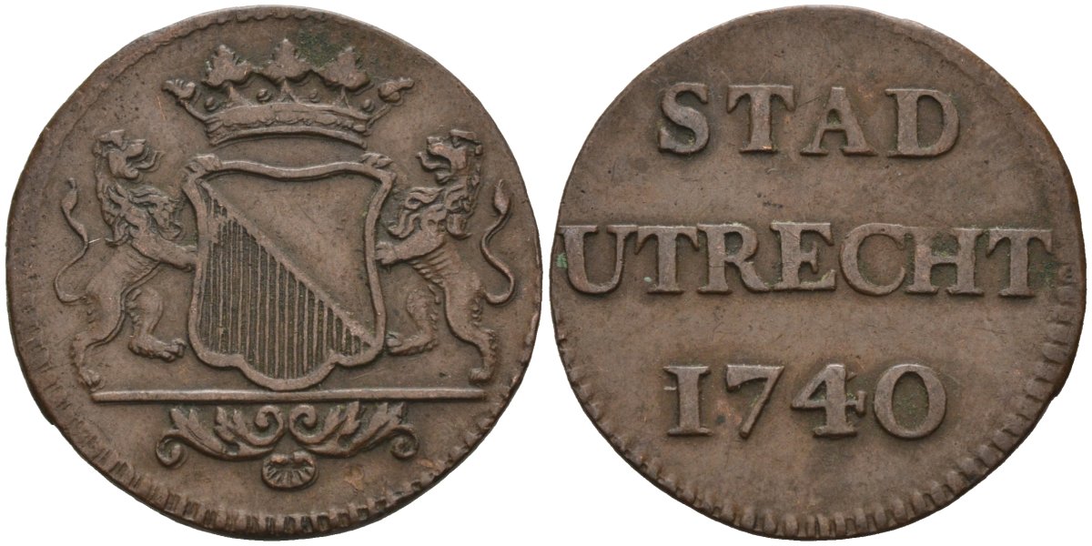Утрехт (Utrecht), Нидерланды 1 дуит 1740 KM 91 медь 4577-232