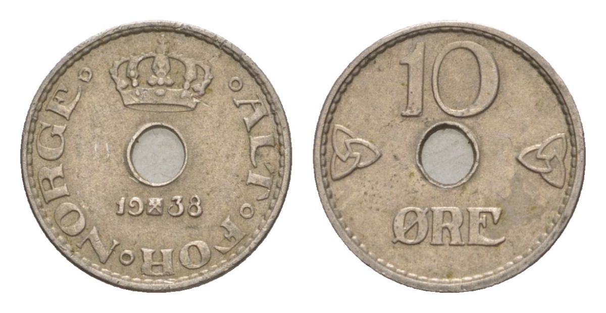 Норвегия 10 эре 1938 Хокон VII (1905-1957) KM 383 медно-никель 4632-1125