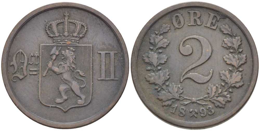 НОРВЕГИЯ 2 ЭРЕ 1893 KM 353 бронза 4402-121