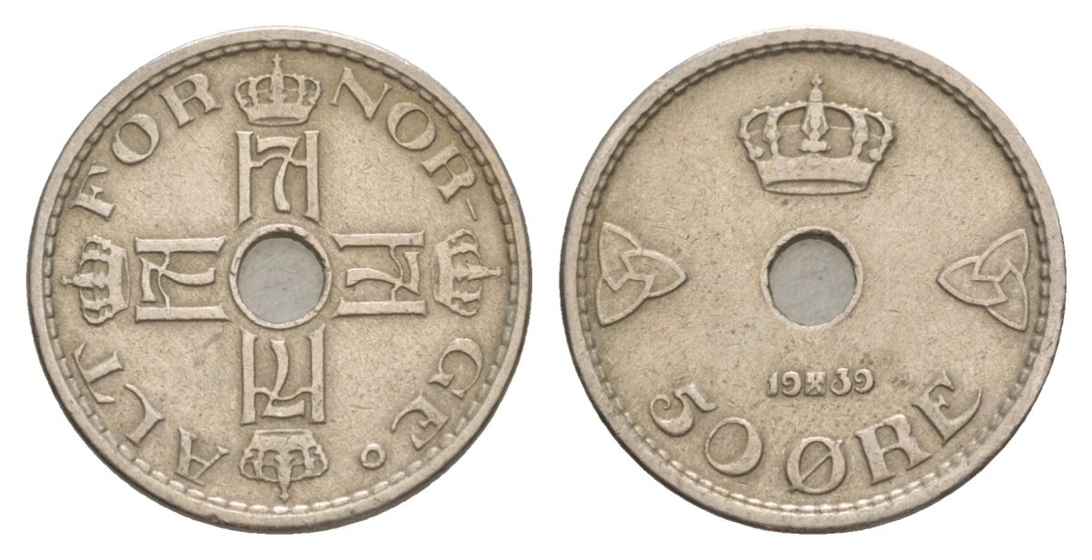 Норвегия 50 эре 1939 Хокон VII (1905-1957) KM 386 медно-никель 4635-354