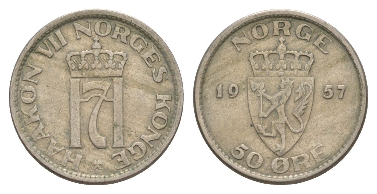 Норвегия 50 эре 1957 Хокон VII (1905-1957) KM 402 медно-никель 4635-422