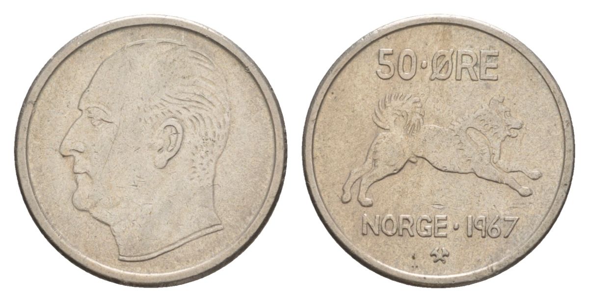Норвегия 50 эре 1967 Улаф V (1957-1991) KM 408 медно-никель 4635-435