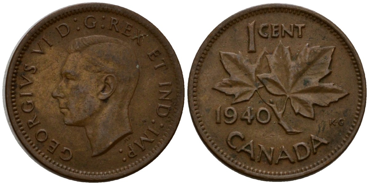 Канада 1 цент 1940 Георг V (1937-1952) KM 32 бронза 4602-825