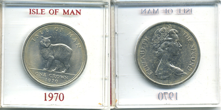ОСТРОВ МЭН 1 КРОНА 1970 МЭНСКИЙ КОТ, В ОРИГИНАЛЬНОЙ ПЛАСТИКОВОЙ КОРОБКЕ KM 18 медно-никель UNC 6-6-1-24
