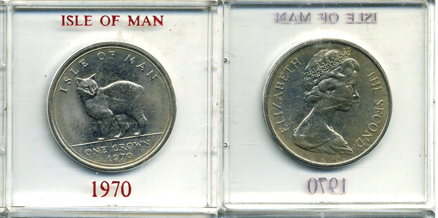 ОСТРОВ МЭН 1 КРОНА 1970 МЭНСКИЙ КОТ, В ОРИГИНАЛЬНОЙ ПЛАСТИКОВОЙ КОРОБКЕ KM 18 медно-никель UNC 6-6-1-69