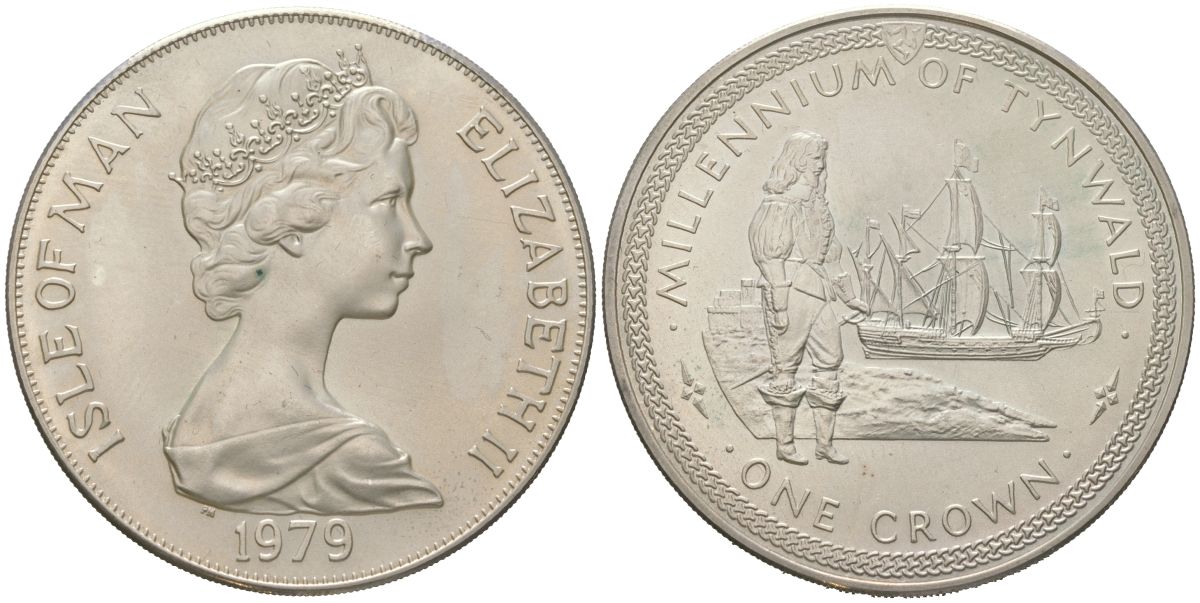 Остров Мэн 1 крона 1979 1000 лет Тинвальду - Ост-индский корабль KM 49 медно-никель BU 00-1067-2-32