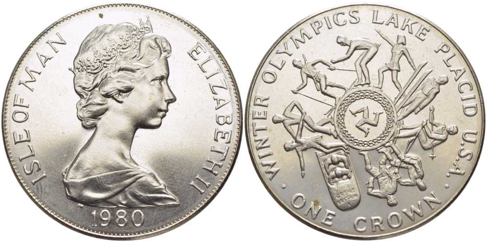 Остров Мэн 1 крона 1980 Зимние Олимпийские игры 1980 года в Лейк-Плэсиде, виды спорта KM 64 медно-никель UNC 107-533