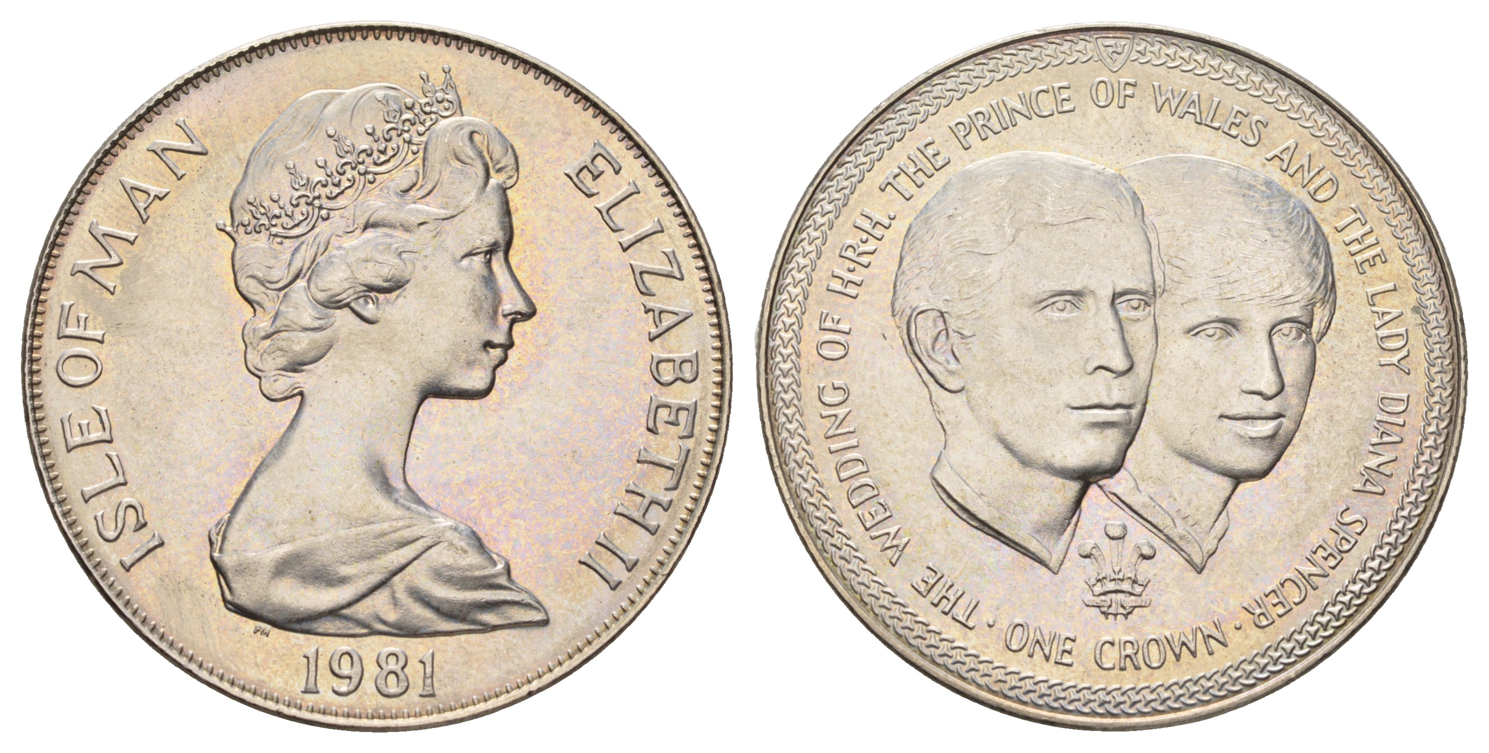 Остров Мэн 1 крона 1981 Королевская свадьба принца Чарльза и леди Дианы, портреты КМ 82 медно-никель UNC 4386-235