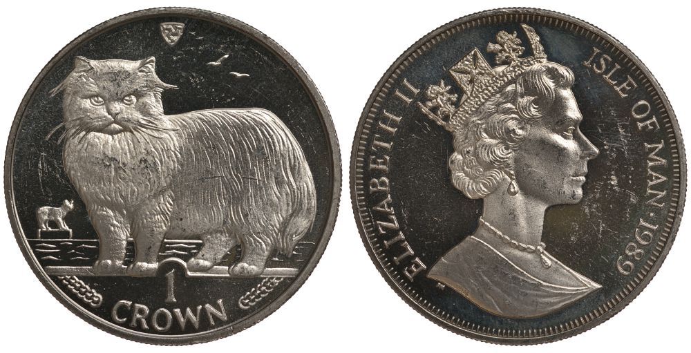 Остров Мэн 1 крона 1989 персидская кошка КМ 250 медно-никель UNC 1078-5-12