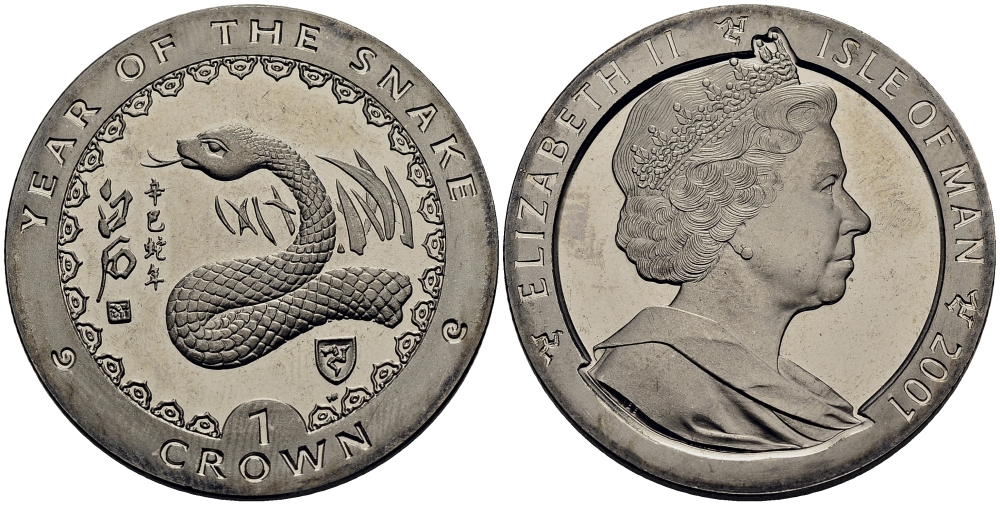 ОСТРОВ МЭН 1 КРОНА 2001 ГОД ЗМЕИ КМ 1062 медно-никель UNC M91-18