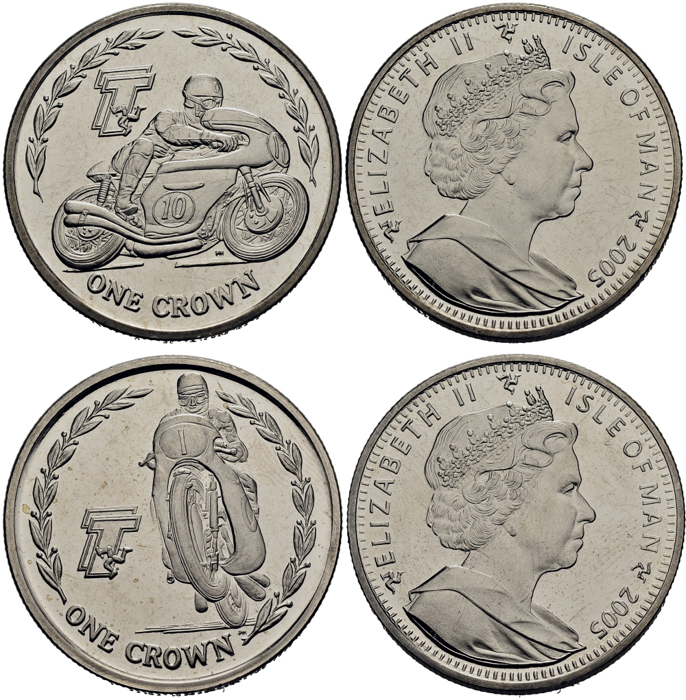 Остров Мэн 1 крона 2005 мотогонки, коллекция из двух монет КМ 1287, 1288 медно-никель UNC M94-09