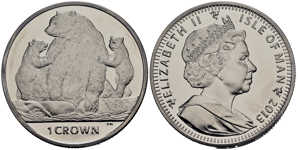 ОСТРОВ МЭН 1 КРОНА 2013 МЕДВЕДЬ И МЕДВЕЖАТА KM NEW медно-никель UNC M94-06