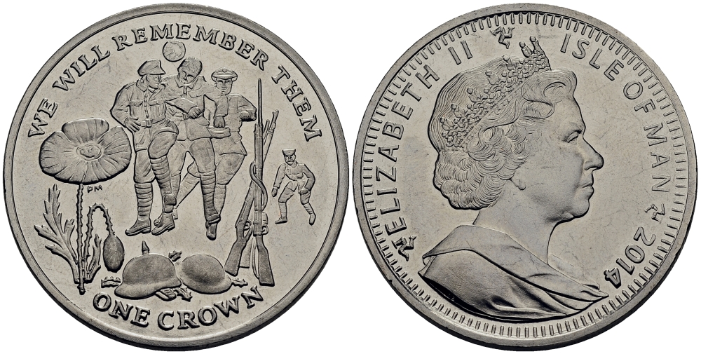 Остров Мэн 1 крона 2014 в память героев первой мировой войны, игра в футбол KM NEW медно-никель UNC 4386-831