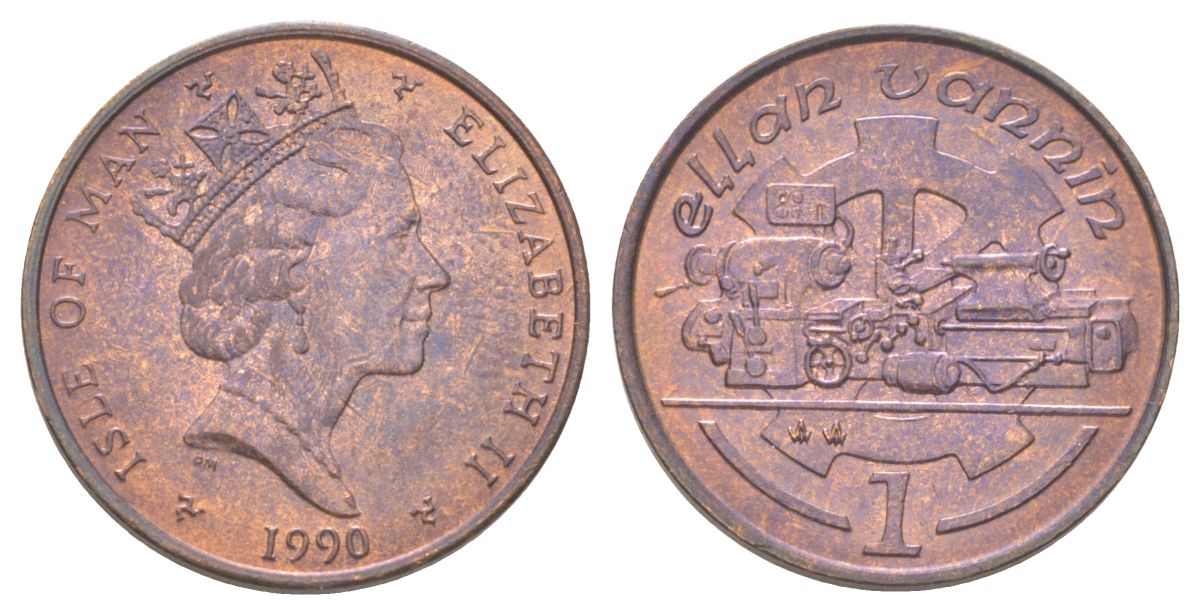 Остров Мэн 1 пенни 1990 АА, токарный станок, Елизавета II (1952) KM 207 бронза UNC 4625-369