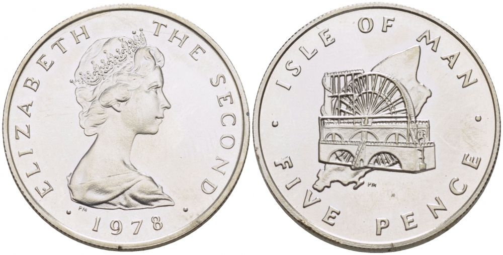 ОСТРОВ МЭН 5 ПЕНСОВ 1978 ТИРАЖ 10000 ЭКЗ. КМ 35.1a серебро UNC 650-521