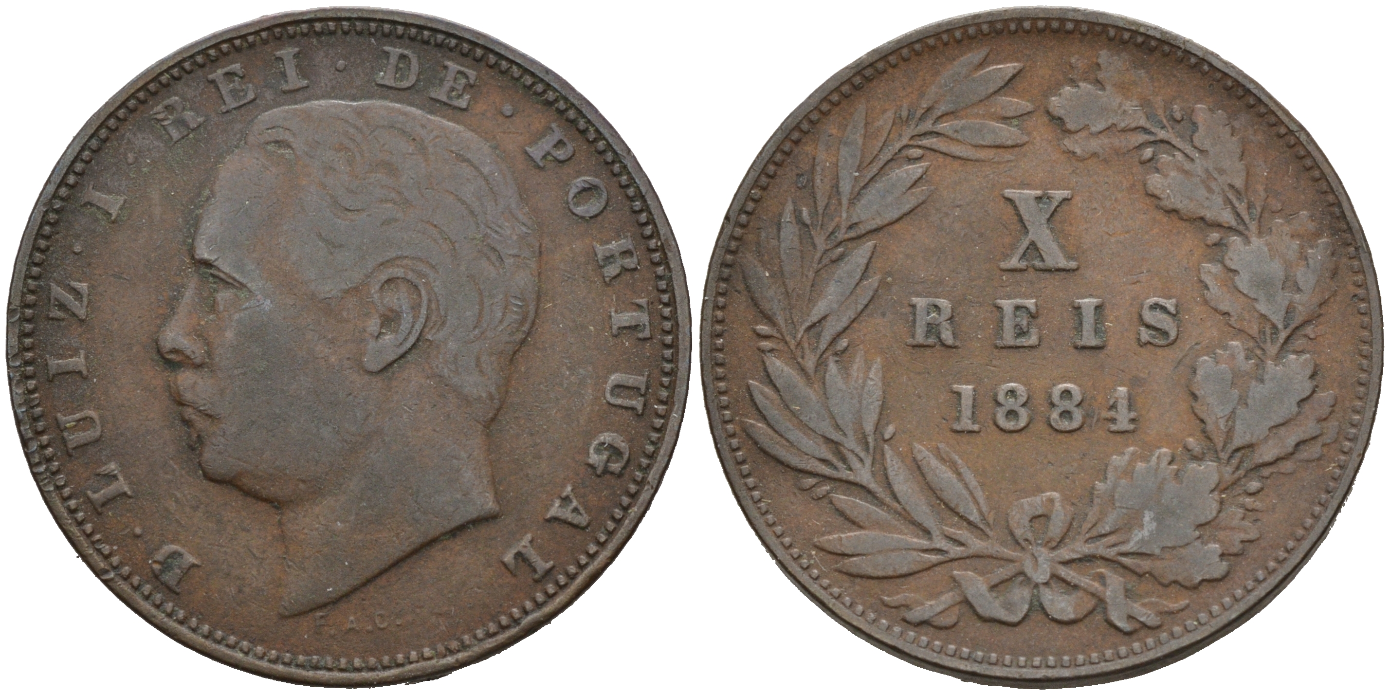 ПОРТУГАЛИЯ 10 РЕЙСОВ 1884 KM 526 медь 4563-1031