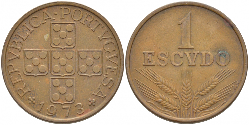 ПОРТУГАЛИЯ 1 ЭСКУДО 1973 KM 597 бронза 3718-415