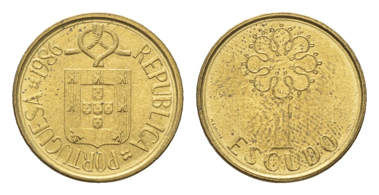 Португалия 1 эскудо 1986 KM 631 никель латунь UNC 4679-535