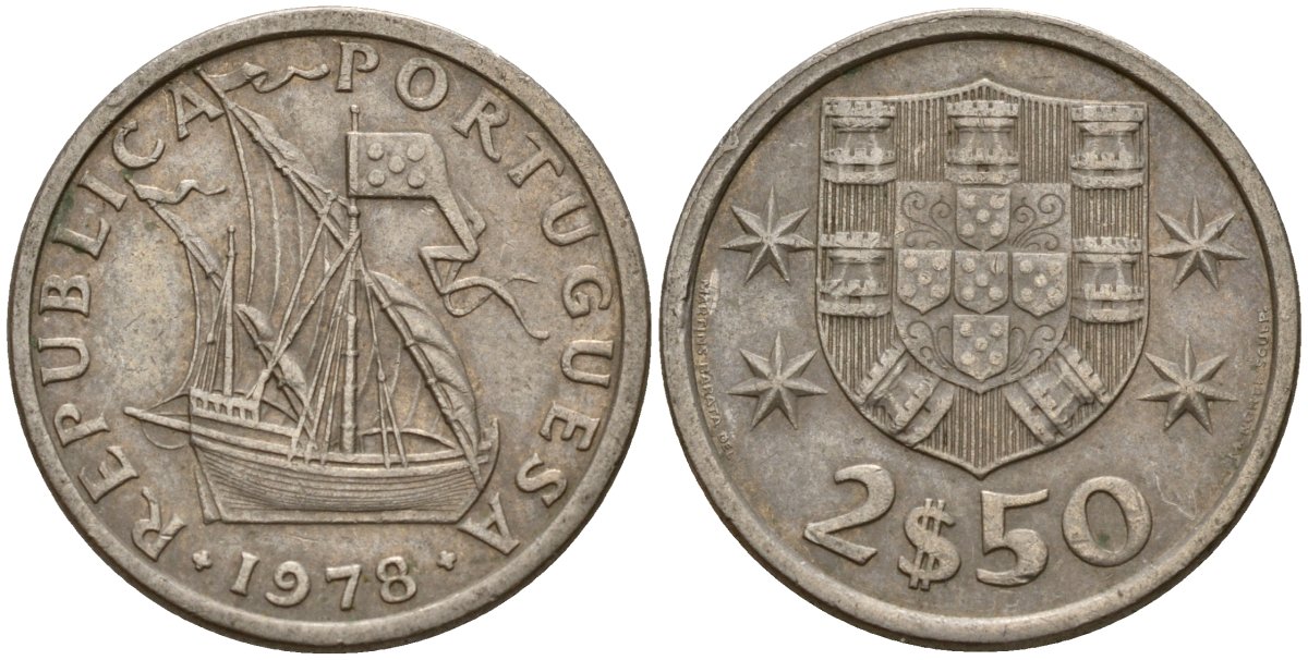 Португалия 2,5 эсукдо 1978 KM 590 медно-никель 4154-1034