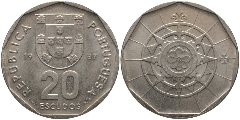 ПОРТУГАЛИЯ 20 ЭСКУДО 1987 KM 634.1 медно-никель 181-411