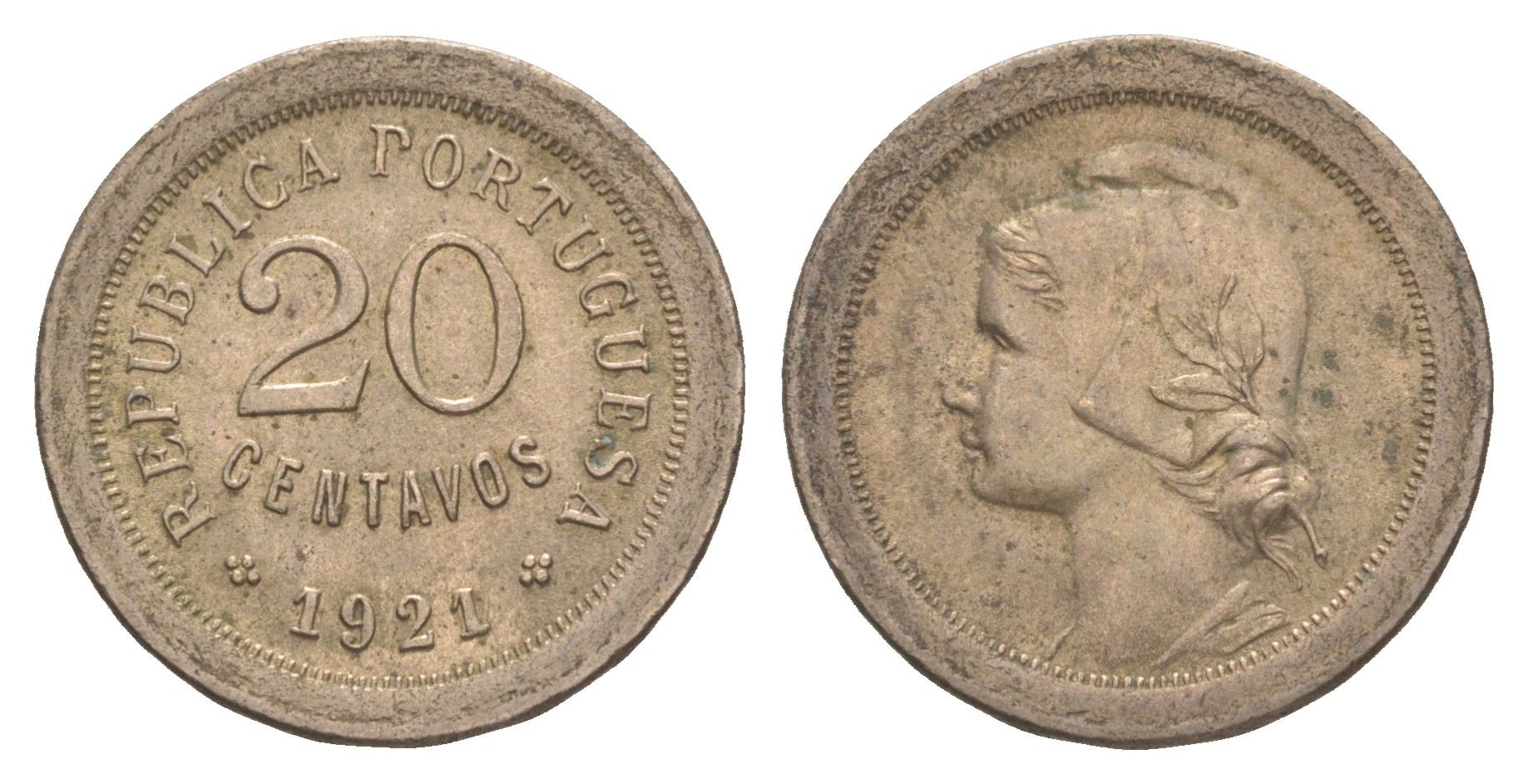 Португалия 20 сентаво 1921 KM 571 медно-никель UNC 4127-812