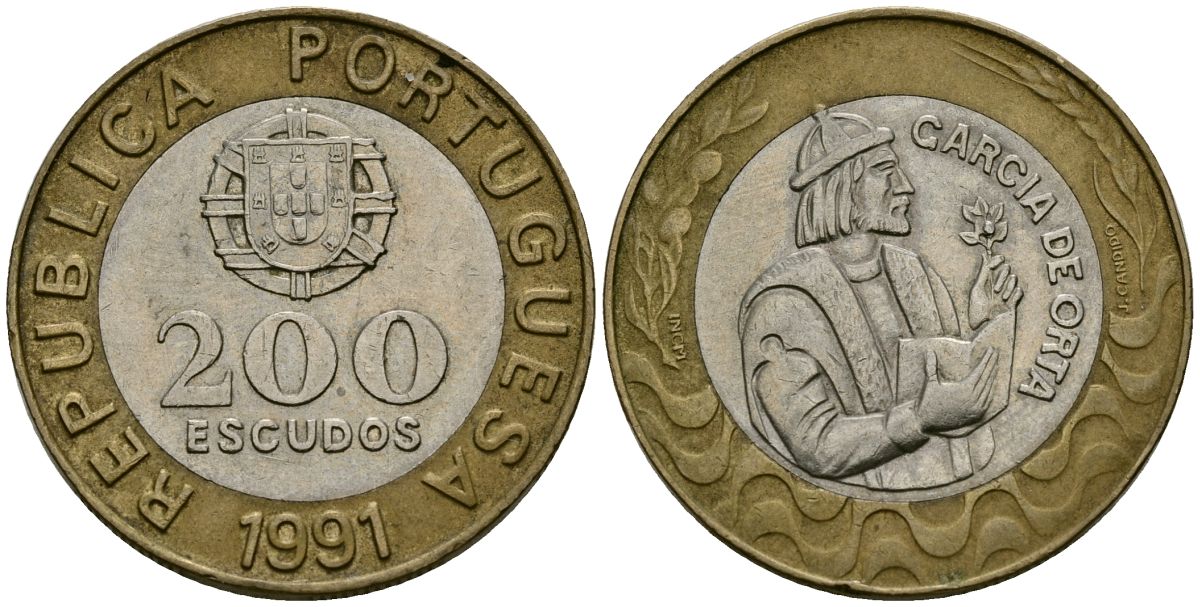 Португалия 200 эскудо 1991 Гарсия Де Орта (1501-1568) KM 655 биметалл 4572-945