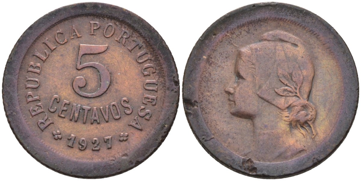 Португалия 5 сентаво 1927 KM 572 бронза 117-343