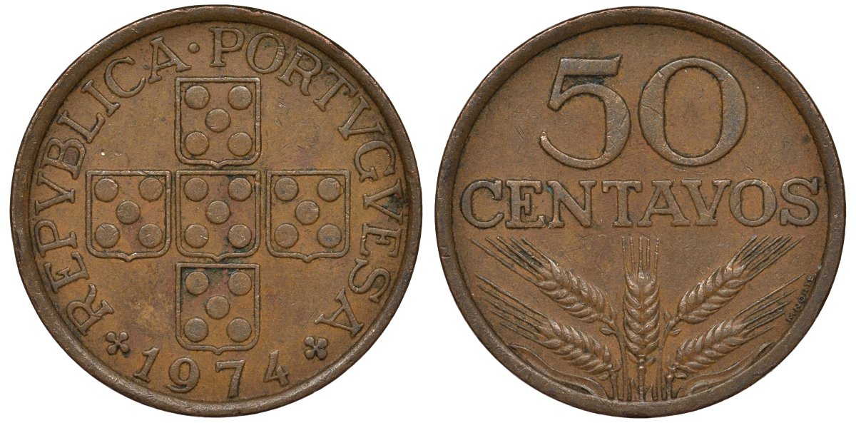 Португалия 50 сентаво 1974 KM 596 бронза 4122-341