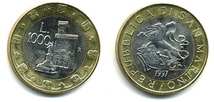 САН-МАРИНО 1000 ЛИР 1997 МИЛЛЕНИУМ биметалл 57-526
