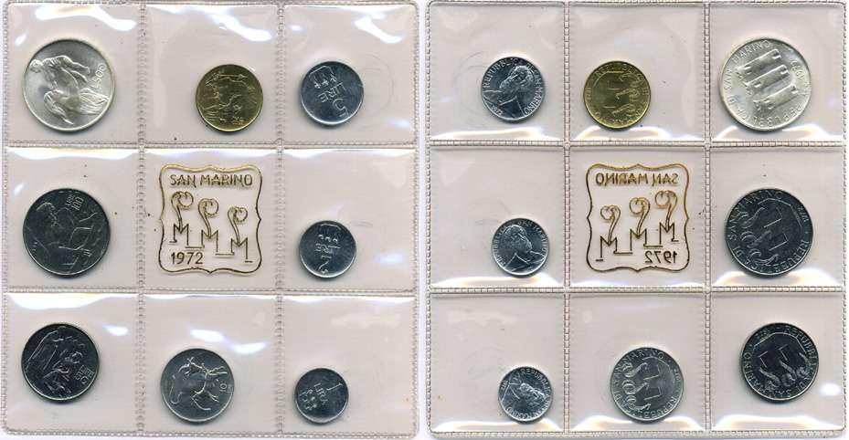 Сан-Марино набор из 8 монет 1972 в целлофановой запайке KM MS1 (KM14-21) UNC 5-4-3-57