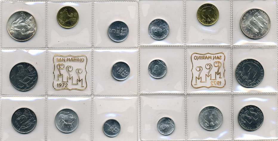Сан-Марино набор из 8 монет 1972 в целлофановой запайке KM MS2 (KM22-29) UNC 5-4-3-44