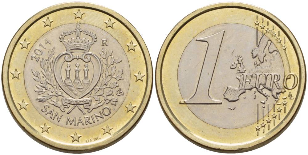 САН-МАРИНО 1 ЕВРО 2014 KM 485 биметалл UNC 4544-726