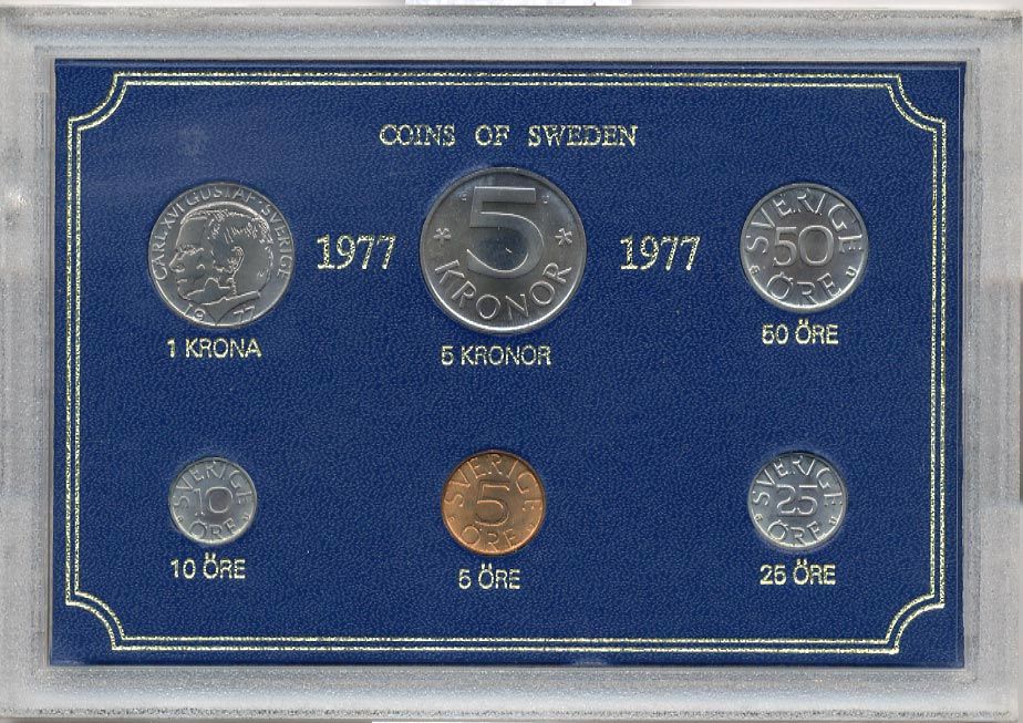 Швеция набор из 6 монет 1977 Карл XVI Густав (1973- ) официальный набор монетного двора UNC 2-4-1-29