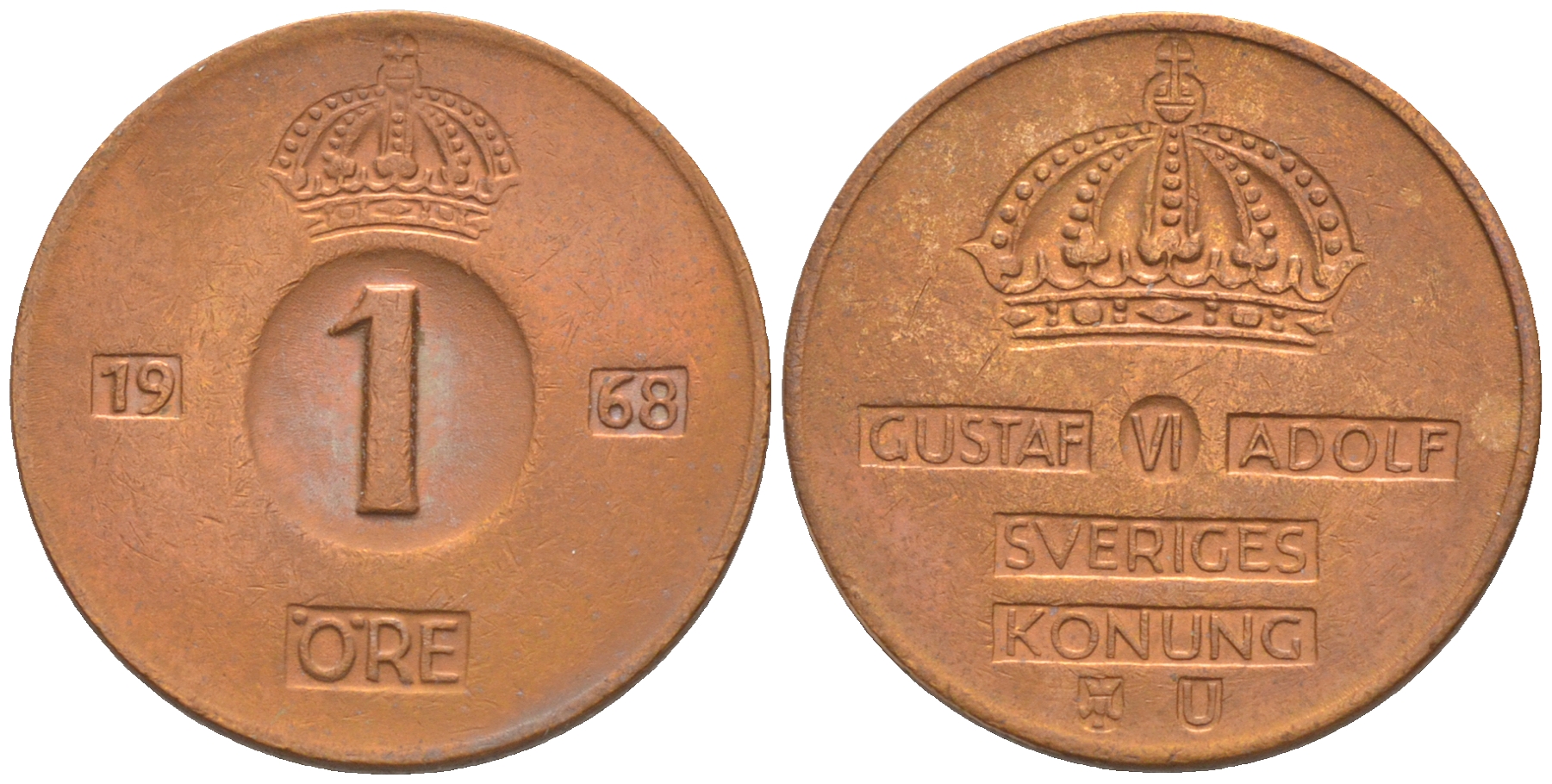 Швеция 1 эре 1968 Густав VI Адольф (1950-1973) KM 820 бронза 187-813