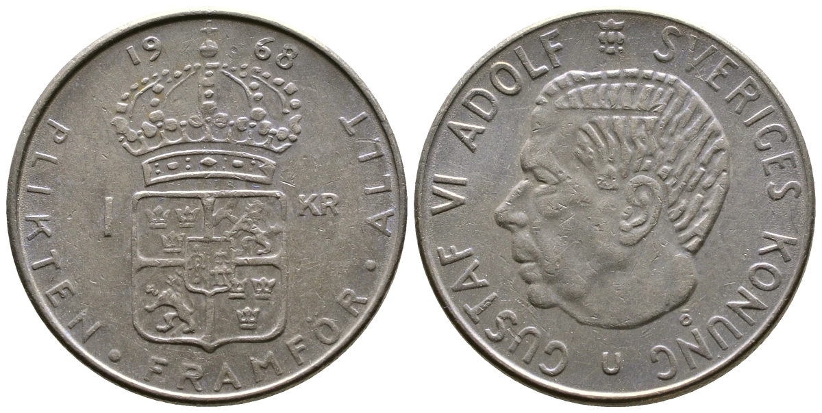 Швеция 1 крона 1968 Густав VI Адольф (1950-1973) KM 826a медь плакированная медно-никелем 4179-754