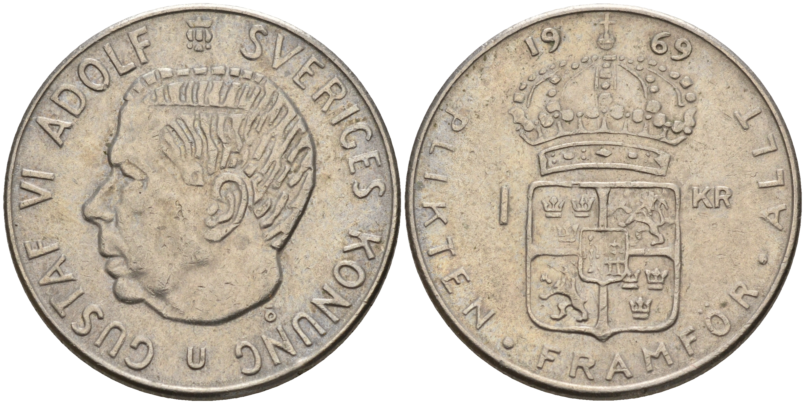Швеция 1 крона 1969 U, Густав VI Адольф (1950-1973) KM 826а медь плакированная медно-никелем 4161-635